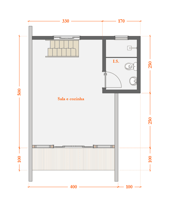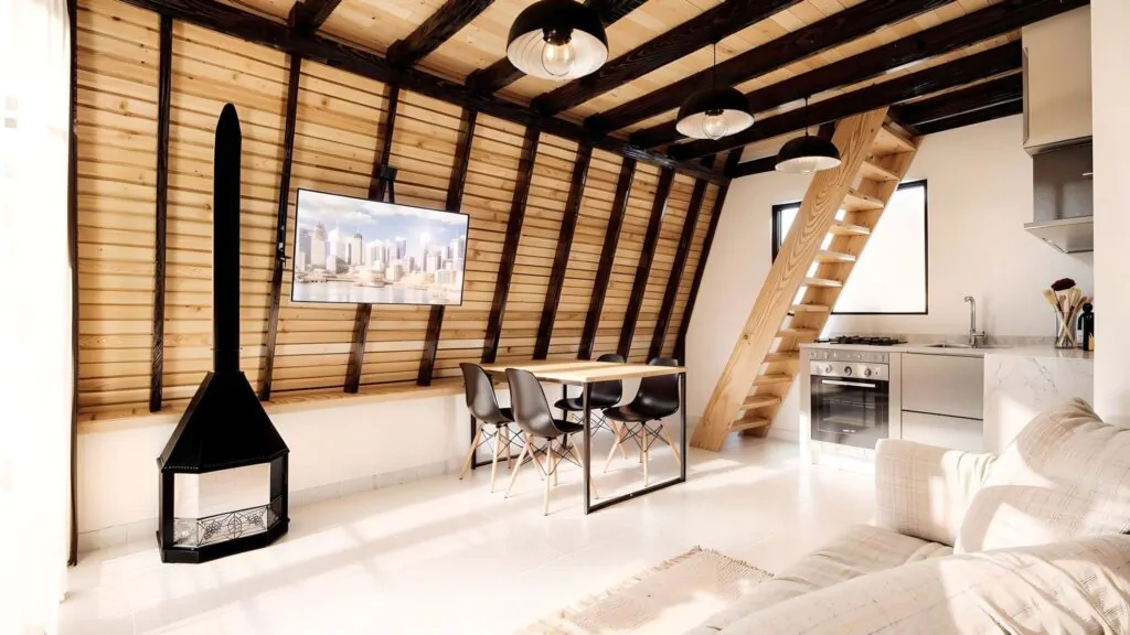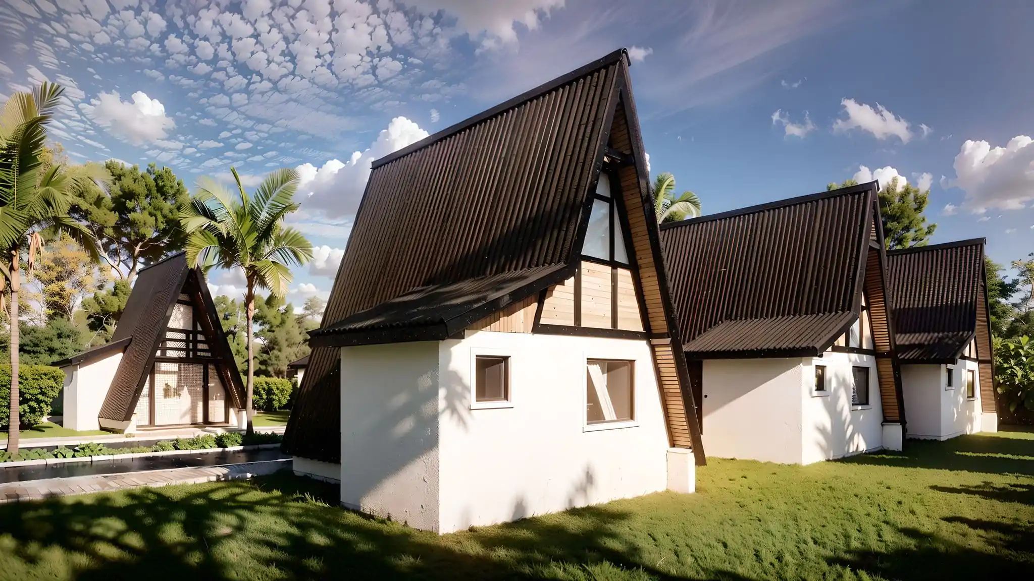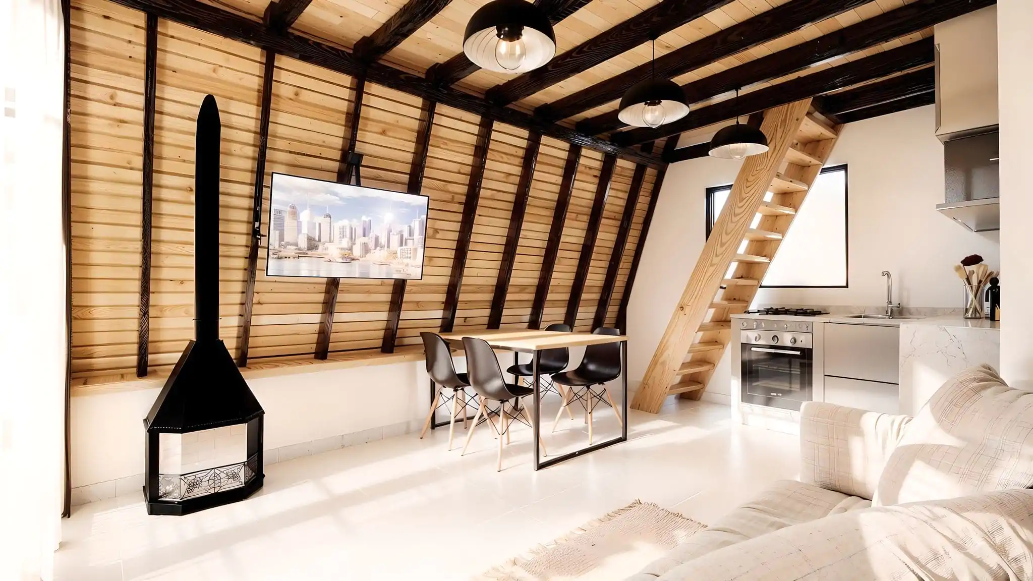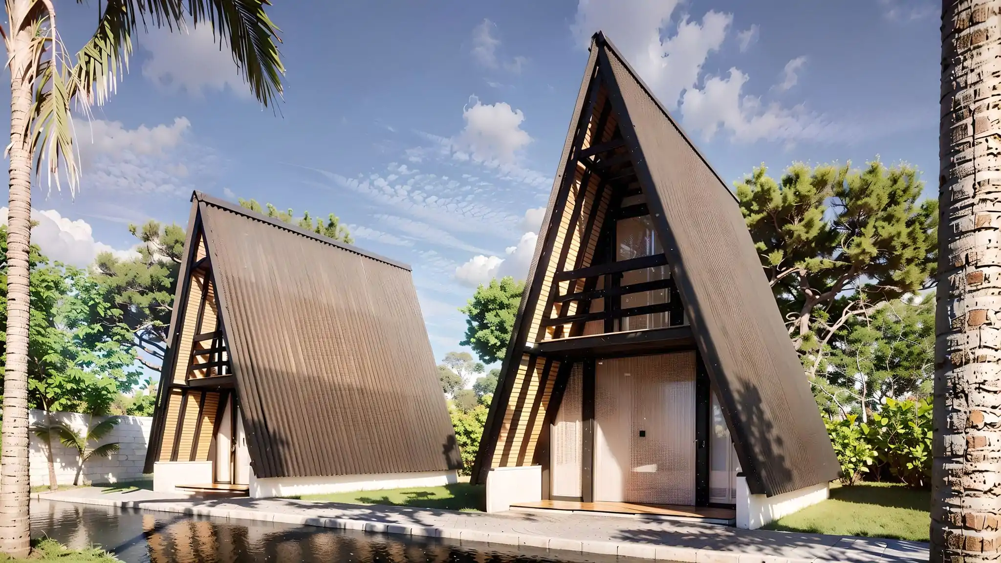 É a uma planta de chalé suíço A-frame, ideal para hospedarias que desejam atender até 4 hospedes em cada unidade.