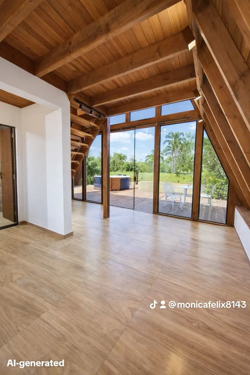 Este chalé de dois andares possui um acabamento mais elegante com forro em madeira, ajudando no conforto térmico, acústico, além de deixar o ambiente aconchegante e romântico.